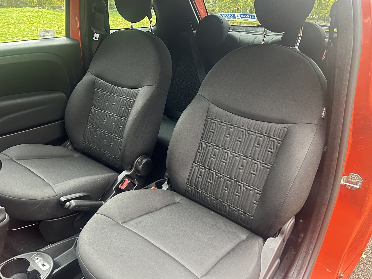 Apple car play/Android Auto, Cruise Control, Ecall, External temperature gauge, Power assist steering, Speed limiter, Stop/start system, Trip computer, 4 speakers, 7" HD Touchscreen Radio, Bluetooth, USB and DAB, Rear speakers, 3rd brake light, Auto headlights, Body colour bumpers, Chrome plated exterior door handles, Dusk and rain sensors, Electric front windows, Electrically adjustable and heated body coloured door mirrors, Fixed glass roof with sunblind, Front fog lights, Halogen headlamps, Heat insulated glass, Heated rear windows with wash wipe, LED daytime running lights, Rear side wing doors, Rear wiper, 1 passenger grab handle, 2 seat bench in second row, 50/50 split folding rear seats with height adjustable rear headrests, Air Conditioning, Auxilliary 12V power socket, Chrome kit, Cloth upholstery, Front Headrests, Height adjustable drivers seat, Height adjustable steering wheel, ISOFIX child seat preparation, Single front passenger seat, Techno leather steering wheel with audio controls, 7 airbags Driver, passenger, side, window and drivers knee airbags, ABS/EBD, ESC + ASR/MSR + HBA + Hill holder, Passenger airbag deactivation system, Traction Control, Tyre pressure monitoring system, Automatic door locking, Immobiliser, Locking fuel filler cap, Remote Central Locking, 15" Alloy wheels.