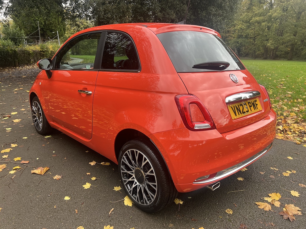 This is a 2023(23) FIAT 500 3DR HATCHBACK MHEV 70bhp in SICILIAN ORANGE with 25685 miles on the clock. Its a PETROL 6 SPEED MANUAL, INSURANCE GROUP 9D and £195 per year Road Fund Licence.