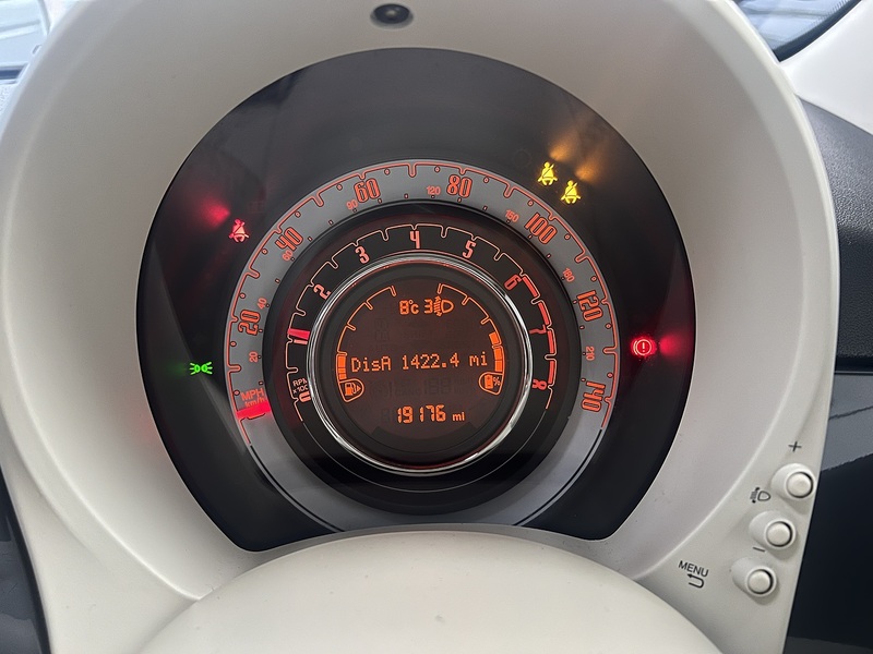 Apple car play/Android Auto, Cruise Control, External temperature gauge, Power assist steering, Rear parking sensor, Speed limiter, Stop/start system, Trip computer, 4 speakers, Rear speakers, Body colour bumpers, Chrome plated exterior door handles, Dolcevita badge on fender, Dusk and rain sensors, Electric front windows, Front fog lights, Heat insulated glass, LED daytime running lights, 1 passenger grab handle, 50/50 split folding rear seats with height adjustable rear headrests, Auxilliary 12V power socket, Chrome kit, Front Headrests, Height adjustable drivers seat, Height adjustable steering wheel, ISOFIX child seat preparation, Techno leather steering wheel with audio controls, 7 airbags Driver, passenger, side, window and drivers knee airbags, ABS/EBD, ESC + ASR/MSR + HBA + Hill holder, Passenger airbag deactivation system, Traction Control, Tyre pressure monitoring system, Automatic door locking, Immobiliser, Locking fuel filler cap, Remote Central Locking.